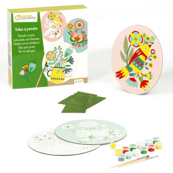 Kit DIY Toiles Ă peindre Avenue Mandarine, pour les enfants Ă partir de 4 ans :