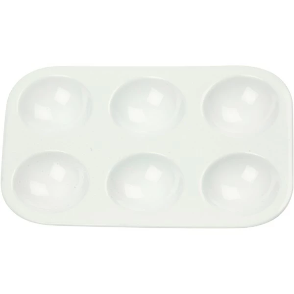 Palette rectangulaire en plastique avec 6 compartiments pour peinture.