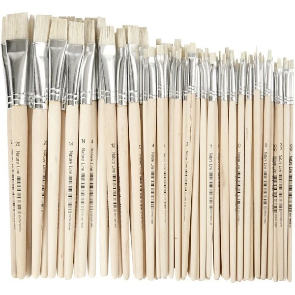 Description de Set de pinceaux plats – Poils de porc – n°0 à 20 – 68 pcs