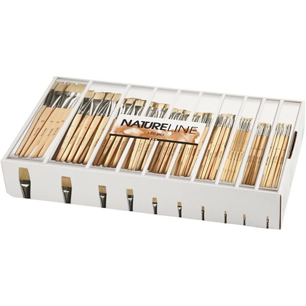 Description de Set de pinceaux plats – Poils de porc – n°0 à 22 – 120 pcs