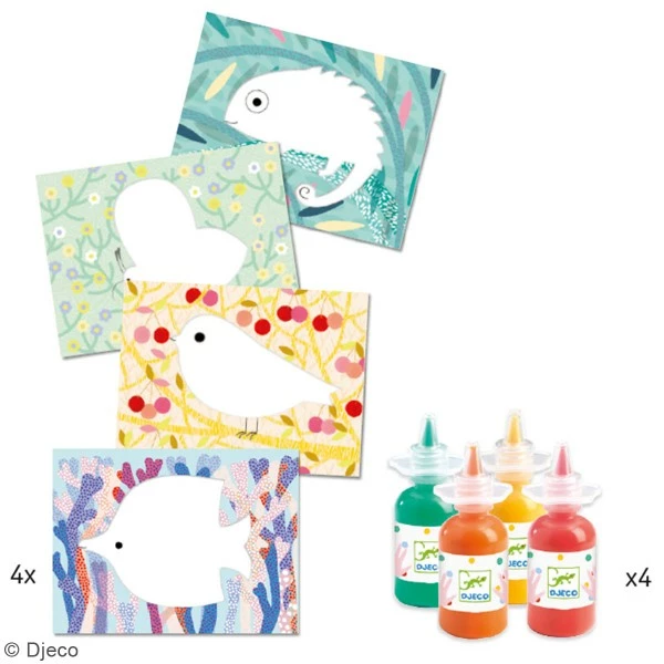 Initiez votre enfant en douceur aux activités manuelles et loisirs créatifs avec ce kit peinture au doigt de Djeco. Ce kit Petite barbouille proposent 4 planches à peindre, destinées aux enfants dès 18 mois.