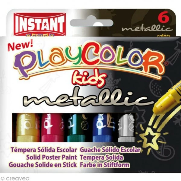 Description de Gouache solide Playcolor en stick – Couleurs métalliques – 6 tubes de 10 g.