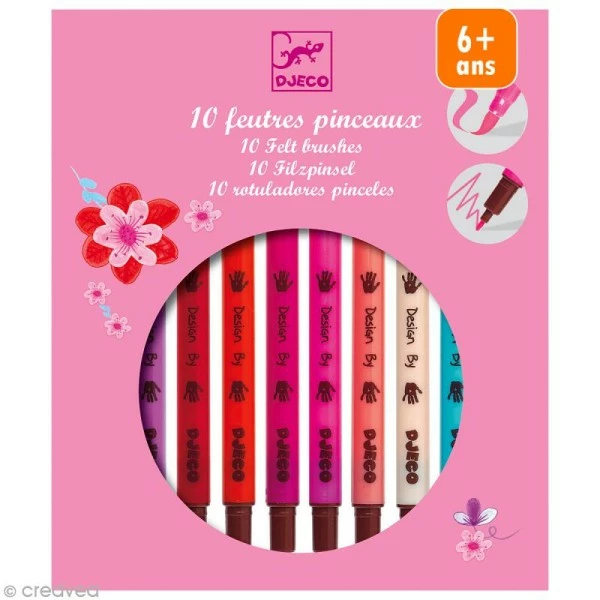 Description de Djeco Les couleurs – 10 feutres pinceaux – Assortiment fille