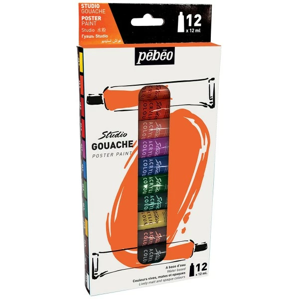 Description de Assortiment Peinture Gouache PĂ©bĂ©o – Studio Gouache – 12 x 12 ml