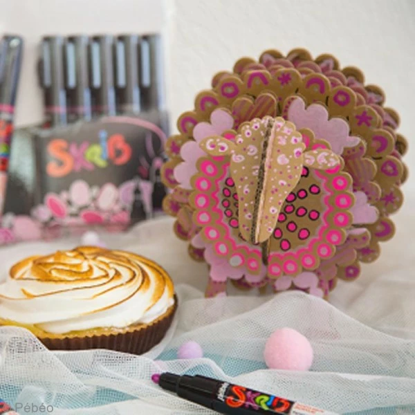 - Avec ces marqueurs, votre imagination et votre crĂ©ativitĂ© n’auront plus aucune limite ! Ils peuvent s’utiliser sur de nombreuses matiĂšressur du papier, carton, bois, coquillages, coquille d’oeuf, liĂšge, mĂ©tal, plĂątre, papier photo, plastique, pierre, terre cuite, verre… sur des galets, et mĂȘme des plumes !
