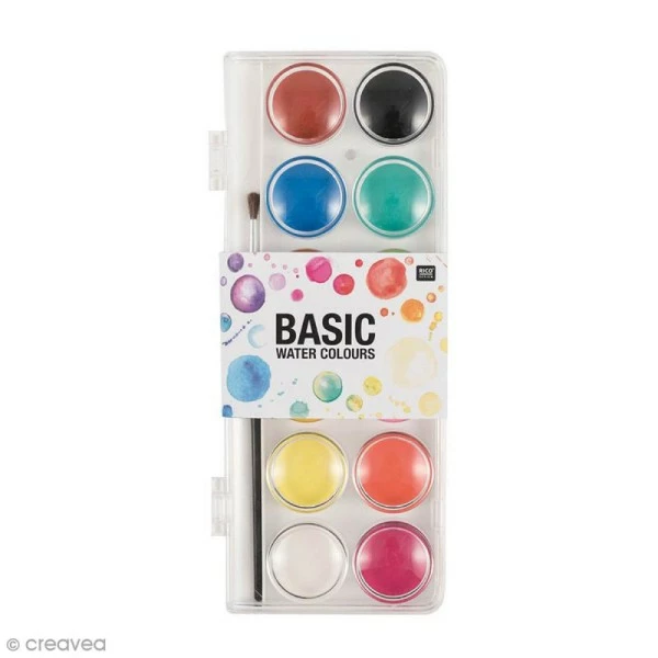 - Contient 1 pinceau et 12 pastilles de 12 couleurs différentes